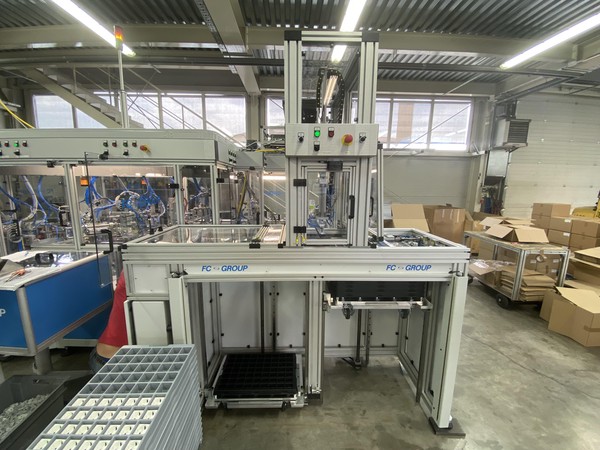 The buffer in custom automated line optimizes the palletizing equipment, working with robots or mechanical palletizers. The criteria for selecting an optimum palletizing system depends on the needs of the project for each customer.