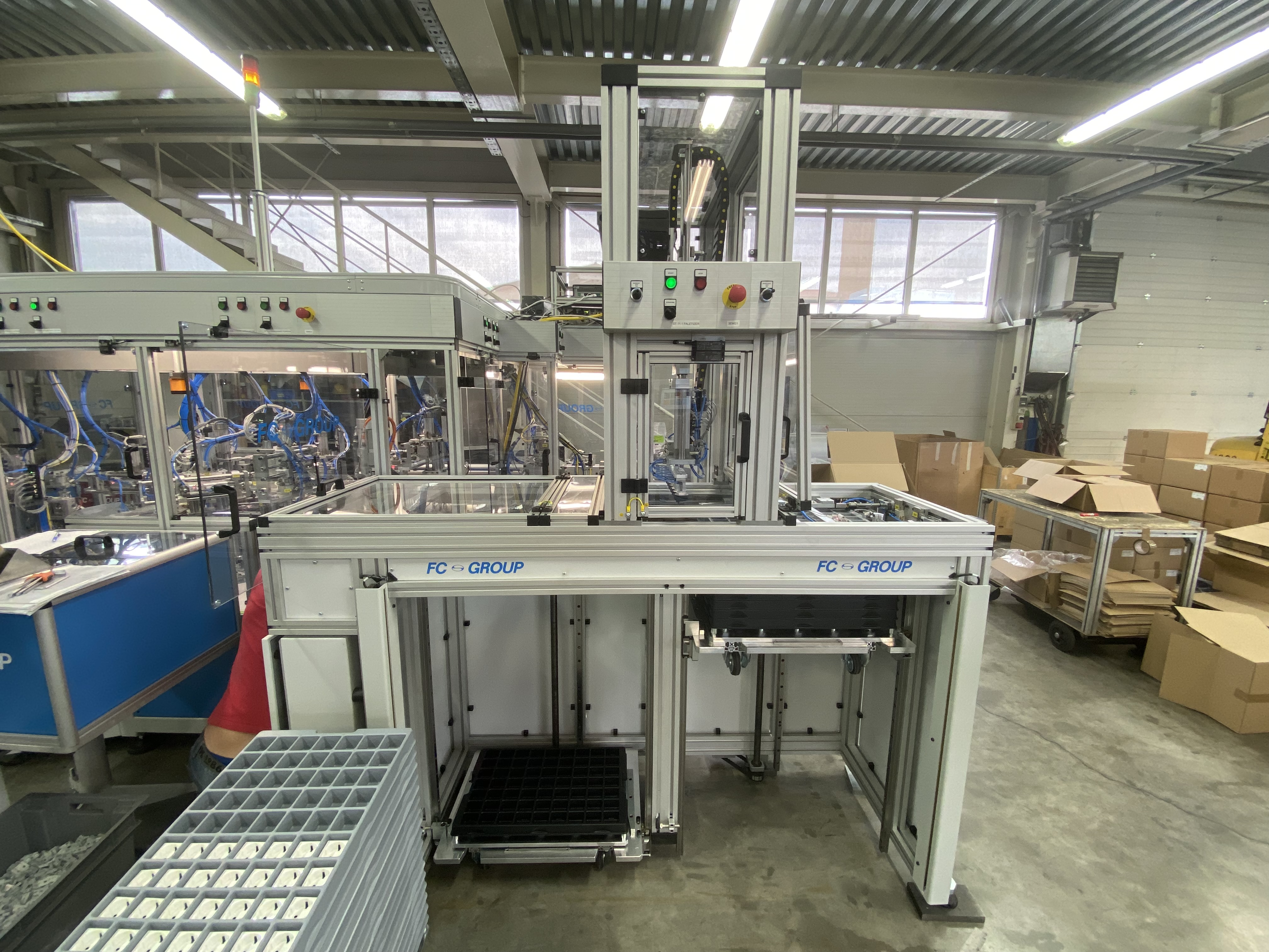 V avtomatizirani liniji uporabljamo opremo za paletiranje, ki deluje z roboti ali mehanskimi paletizerji. Merila za izbiro optimalnega sistema za paletiranje so pri vsaki stranki odvisna od potreb projekta.